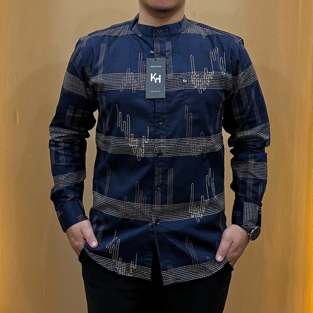 [ KH ] Kemeja Pria Dewasa Lengan Panjang Kerah Sanghai Motif Grafis slimfit Premium