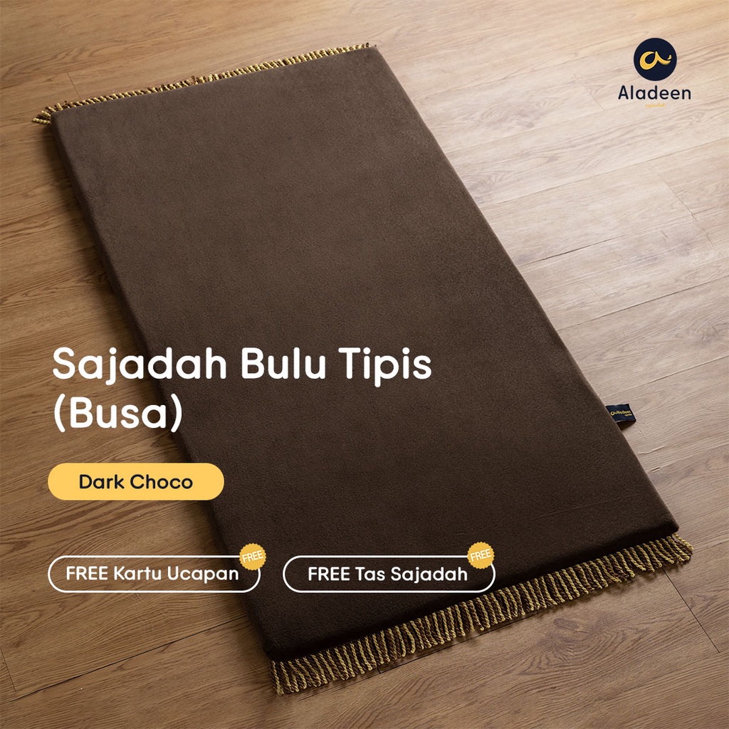Sajadah Polos Bulu Tipis COKLAT TUA Aladeen - Size Dewasa FREE Tas dan Kartu Ucapan