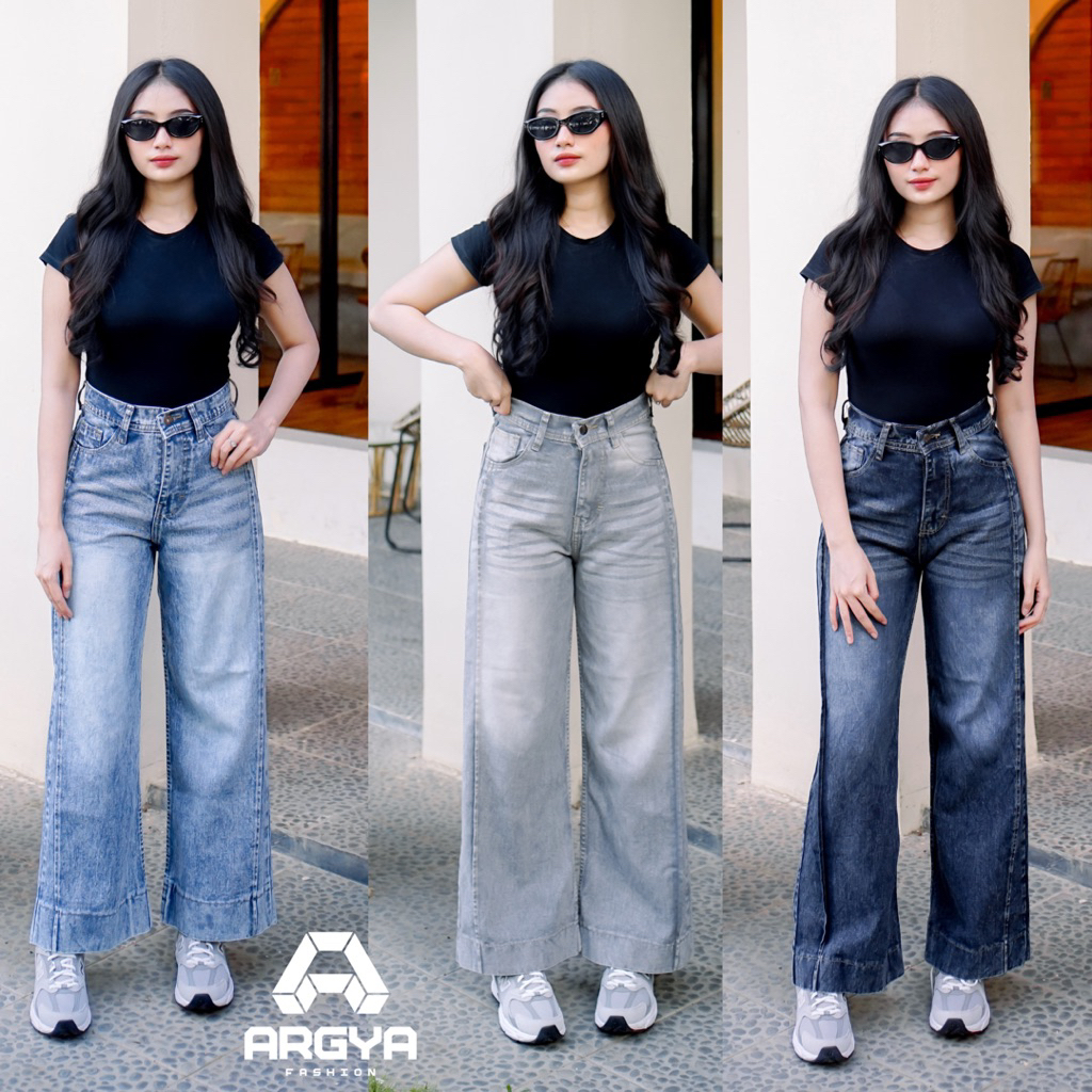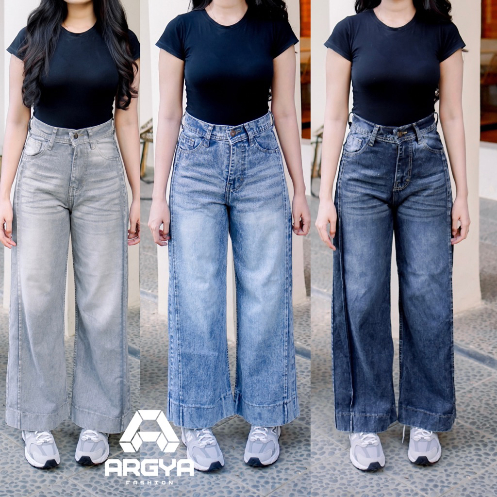 highwaist kulot loose celana wide leg jeans korea style-celana higwaist wanita wide leg non stretch