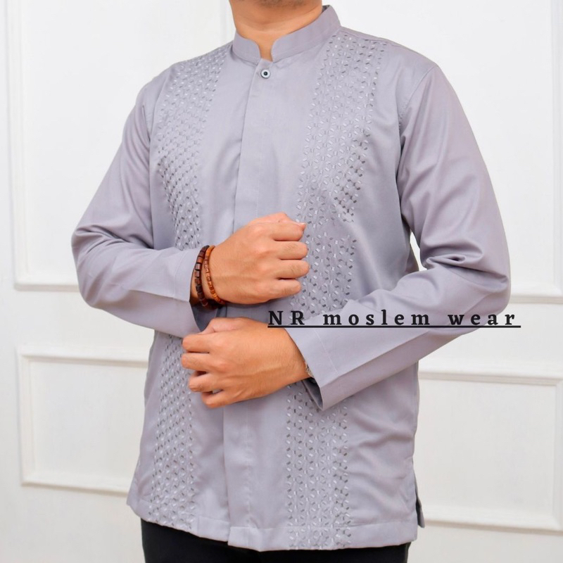 Baju Koko Warna Lengan Panjang Borderan Premium Kode ARK-16