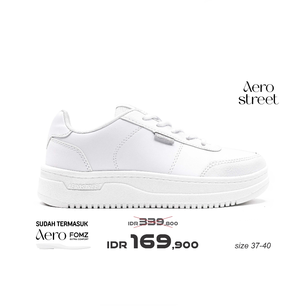 Aerostreet 37-40 Leona Putih Putih - Sepatu Sneakers Casual Sport Pria Wanita Aero Street