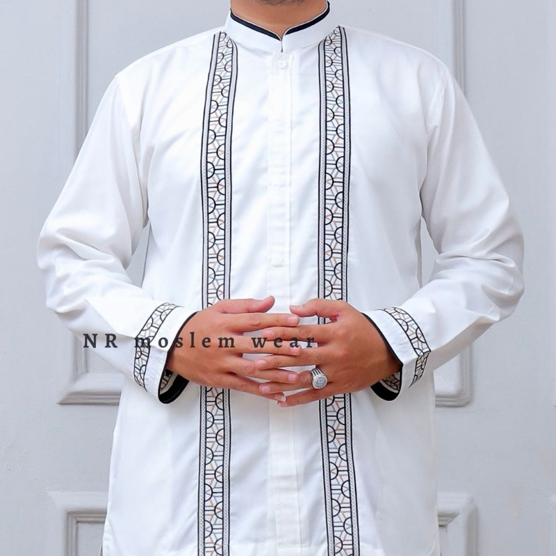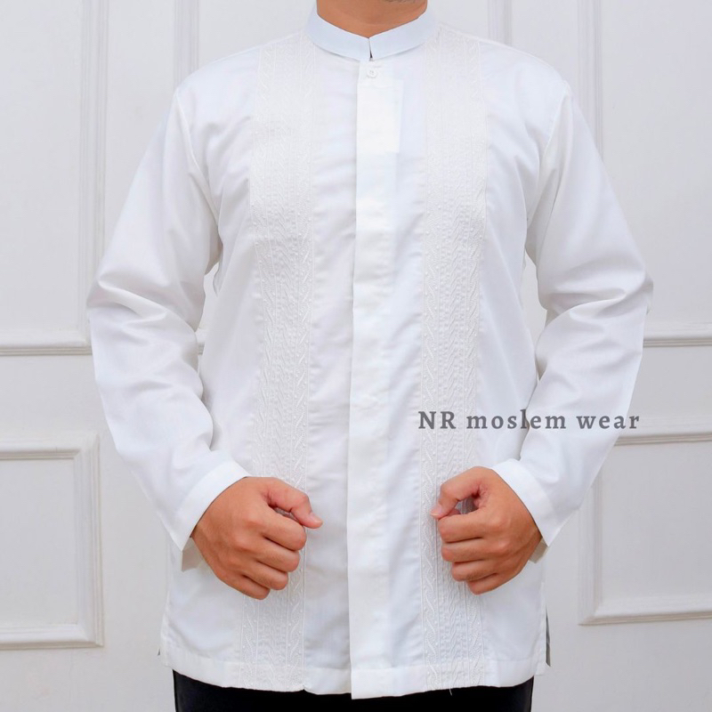 BAJU KOKO PUTIH PREMIUM , BAJU KOKO PUTIH LENGAN PANJANG PERLENGKAPAN HAJI UMROH ARK-16