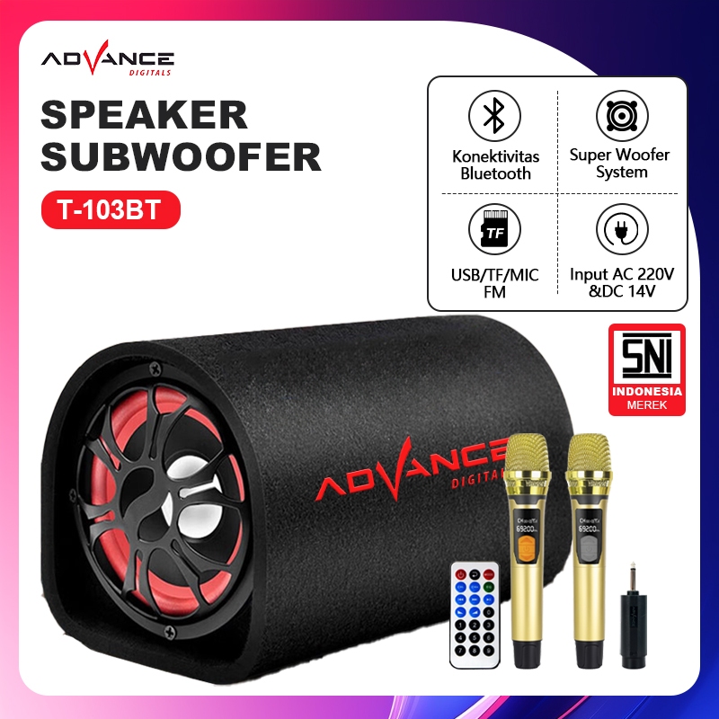 Advance 8" Subwoofer Bass 75W Speaker Bluetooth T103BT With Remote With 2 MIC