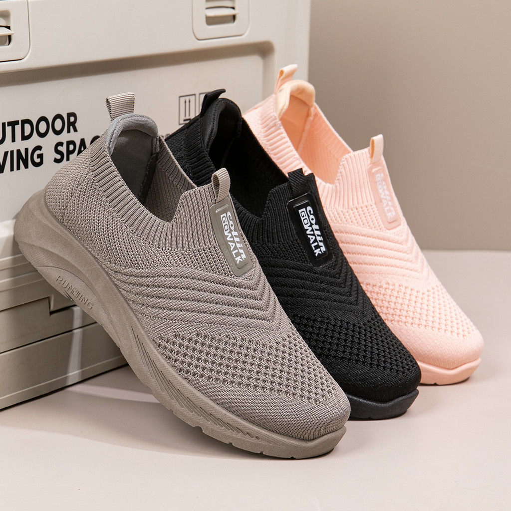 Sepatu Wanita Sepatu Olahraga Import Korea Model Slip On Design Terbaru Rajut Shoes SKT1000-W