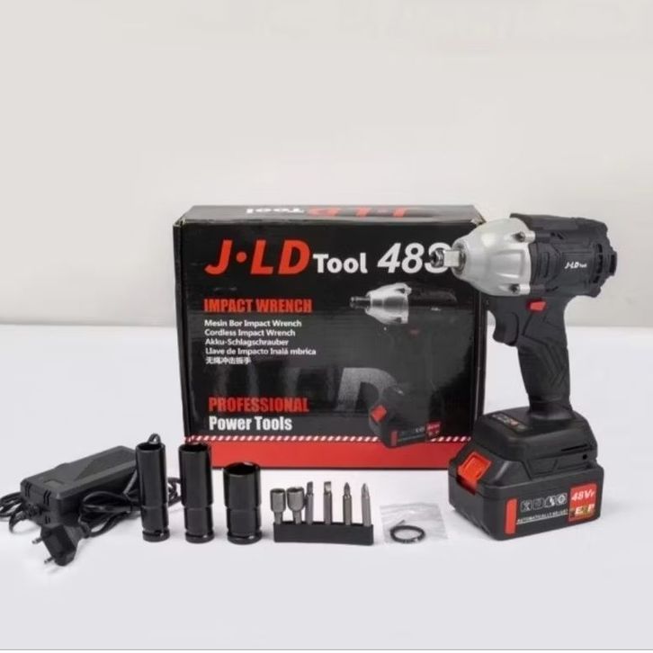 JLD 48S Cordless Impact Wrench Brushless Set Komplit Alat Buka Baud Ban Motor Mobil