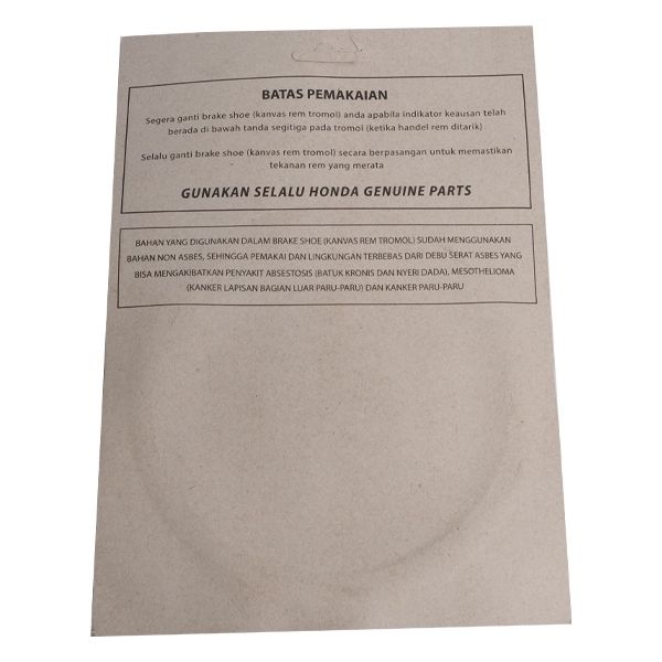 Kampas Rem Belakang Tromol KZL BeAT, Scoopy, Spacy, Vario 43130KZL930
