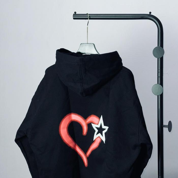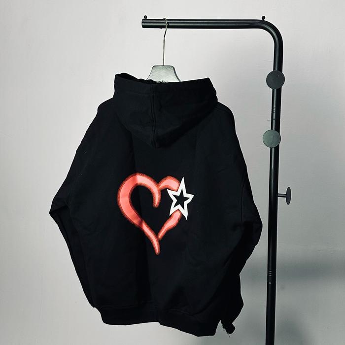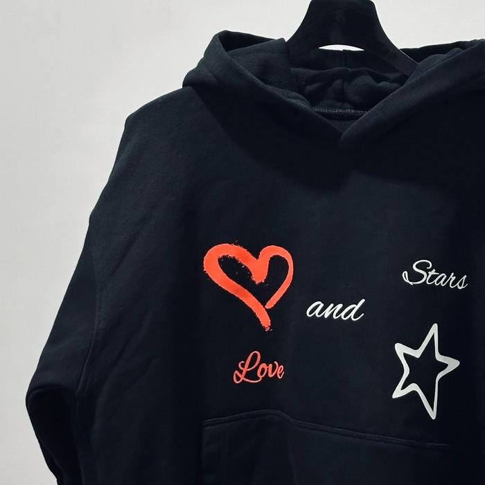 Hoodie Cotton Fleece 330gsm Motif LOVE AND STAR BLACK