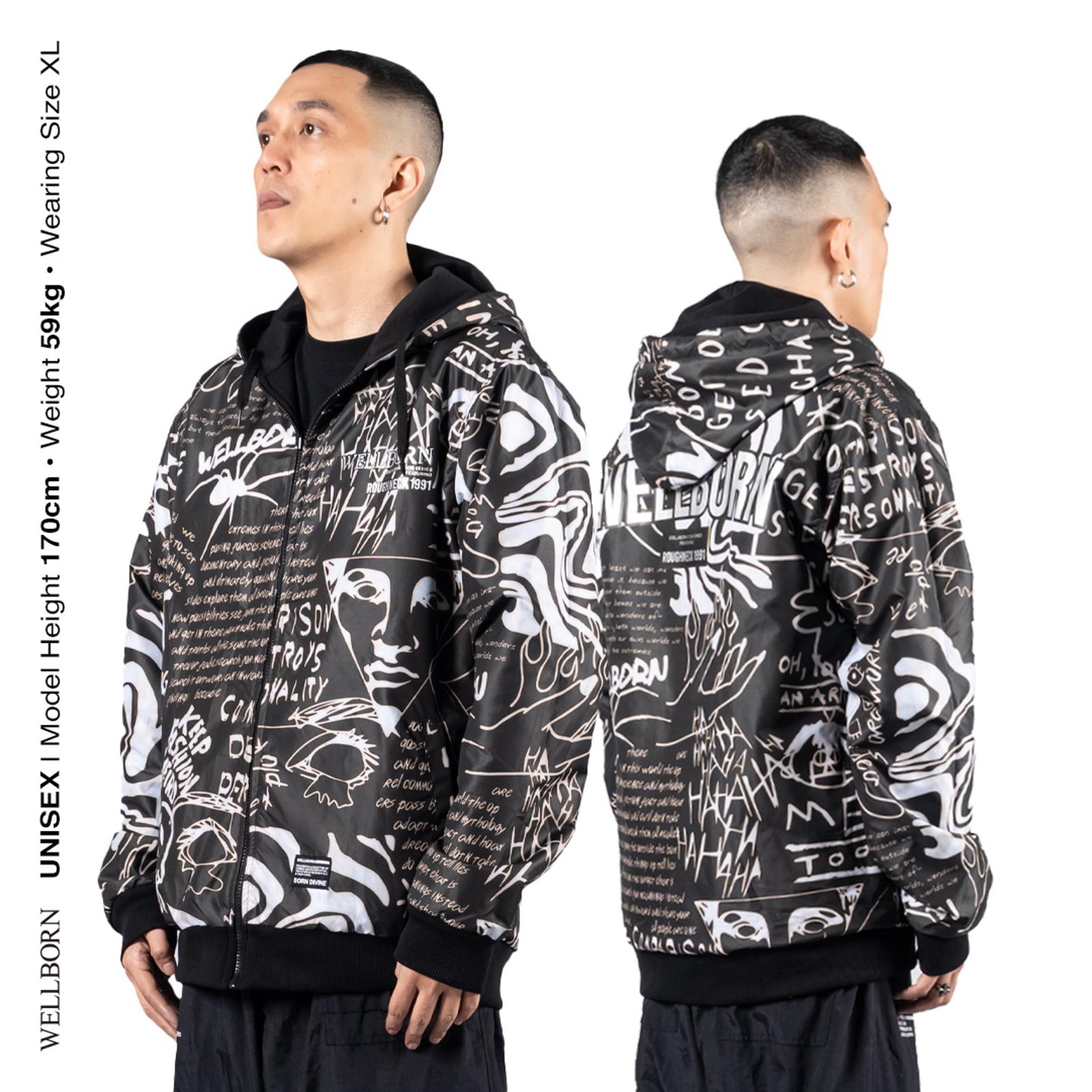 RN X WBRN Hoodie Zip Reversible Zipper Hitam