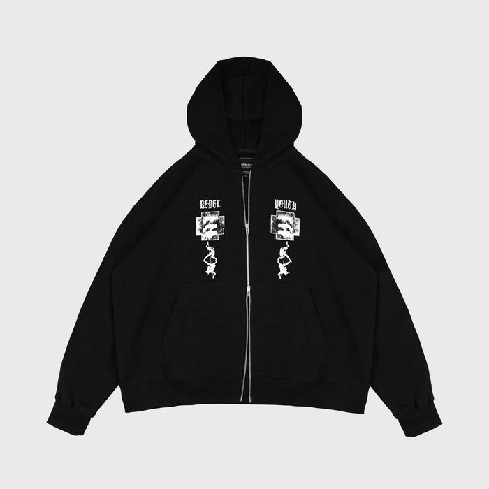 Epidemic Hoodie Double Zipper Boxy Fit 330 Gsm Undying Peace Black