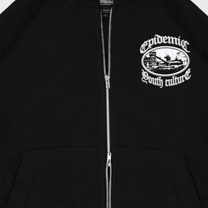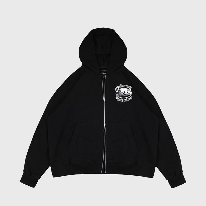 Epidemic Hoodie Double Zipper Boxy Fit 330 Gsm Curtois Black