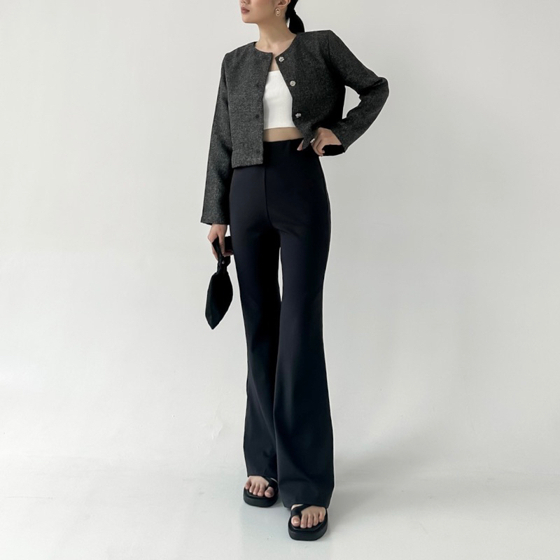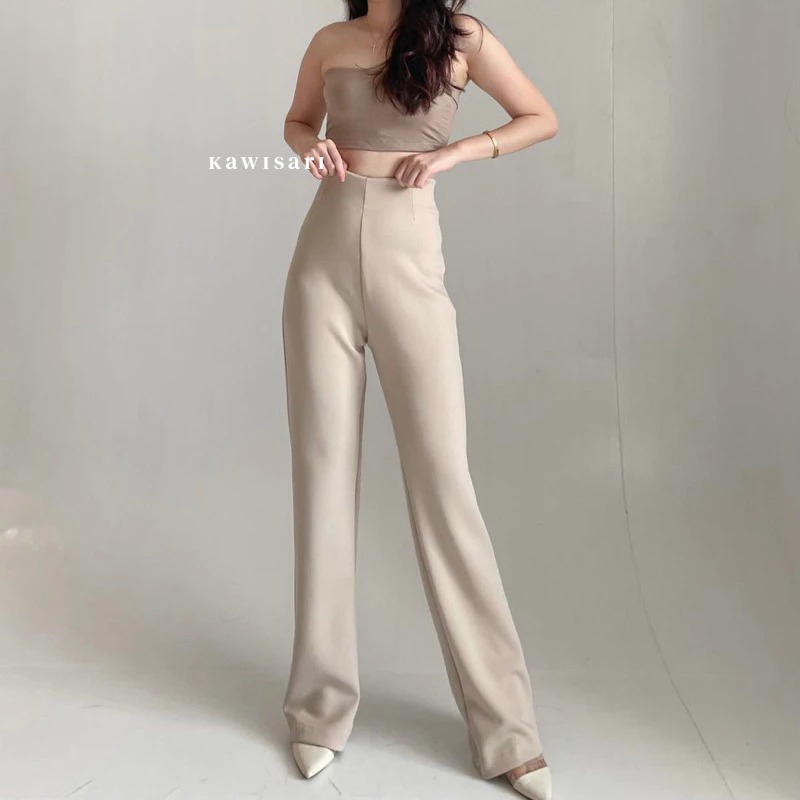 Kawisari - Evelyn Flare Pants Highwaist Cutbray Scuba Premium - Celana Adem Melar Panjang