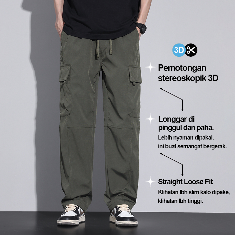 Suyx Celana Cargo Pants Pria Loose Reguler Celana Untuk Santai & Outdoor Long Celana Panjang Pria