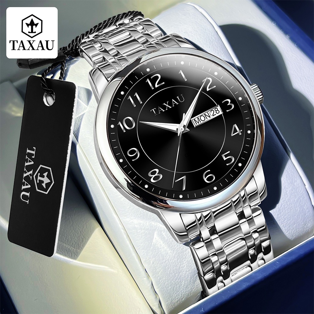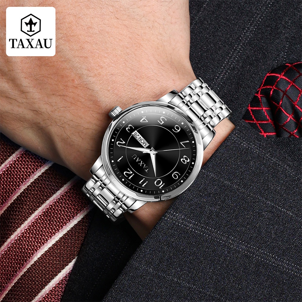 Taxau Jam Tangan Mewah Pria Tahan Air Rantai Baja Tahan Karat Analog Asli Jam Tangan Pria 8405