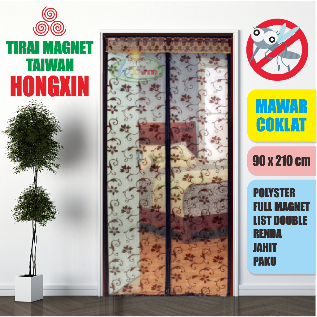 Tirai Pintu Magnet Hongxin Mawar Coklat 90x210cm