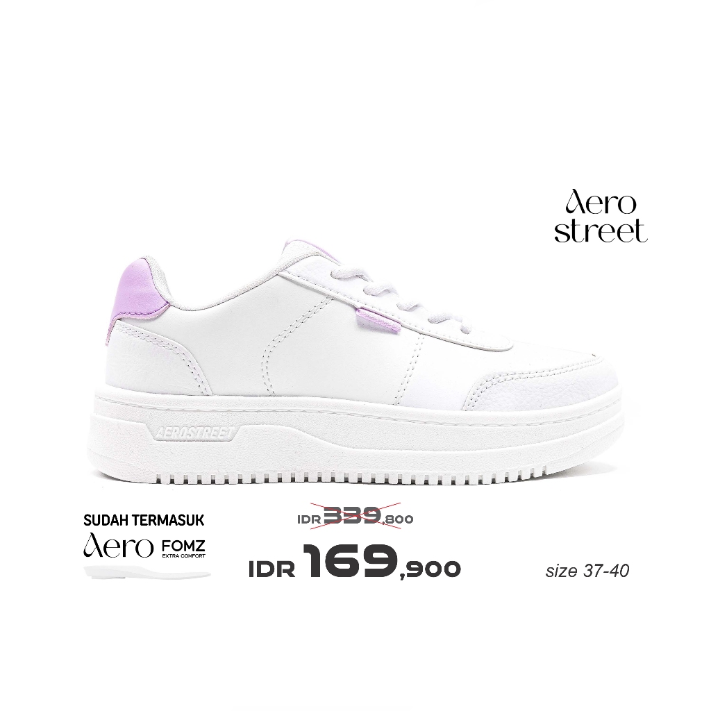 Aerostreet 37-40 Leona Putih Putih Lilac - Sepatu Sneakers Casual Sport Pria Wanita Aero Street