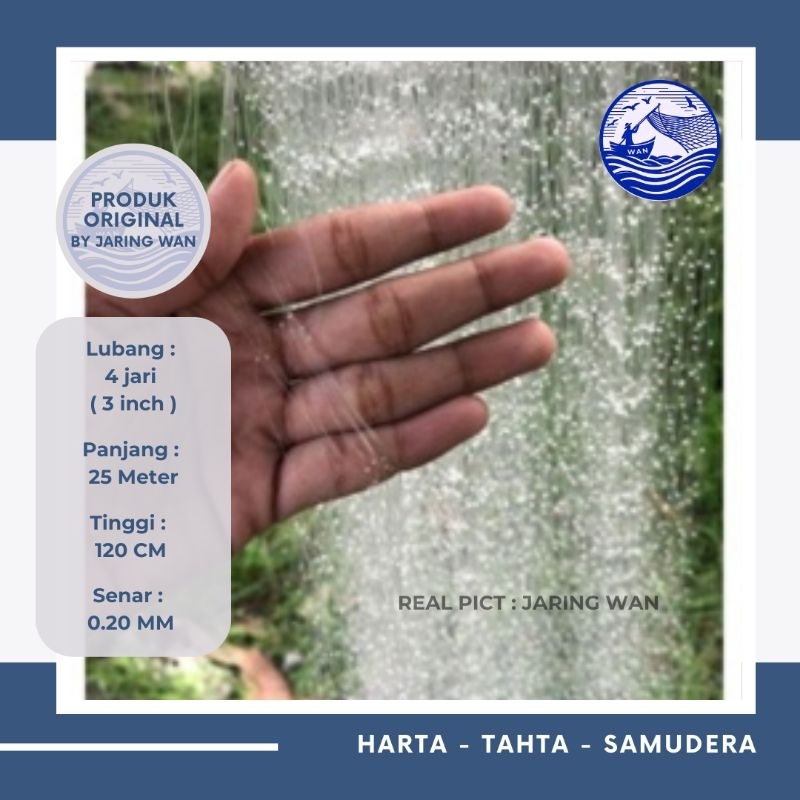 Jaring Ikan panjang 25M lubang 2 Jari 3 Jari 4 Jari SENAR TEBAL