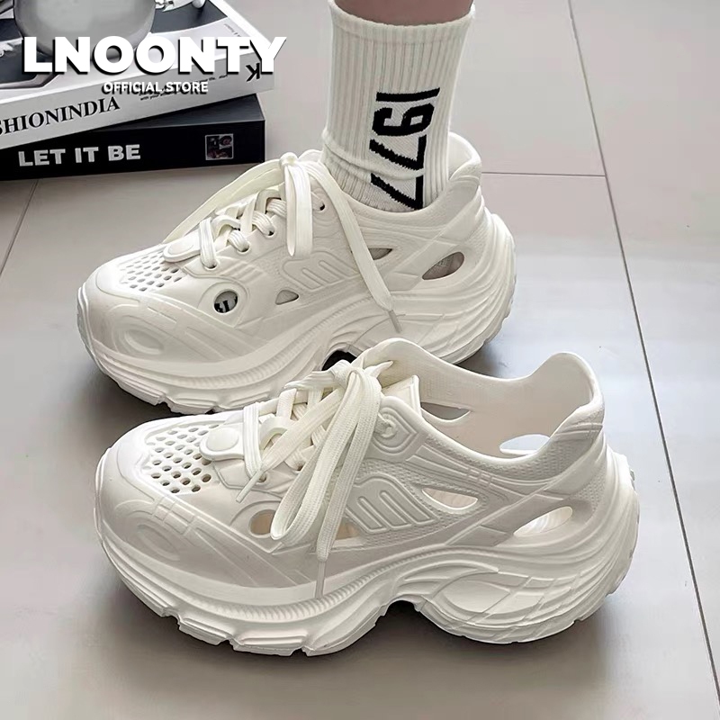 LNOONTY Sandal Wanita Sepatu Sneakers Wanita Korea Terbaru Tebal Tinggi Sepatu Perempuan Olahraga Ringan Empuk
