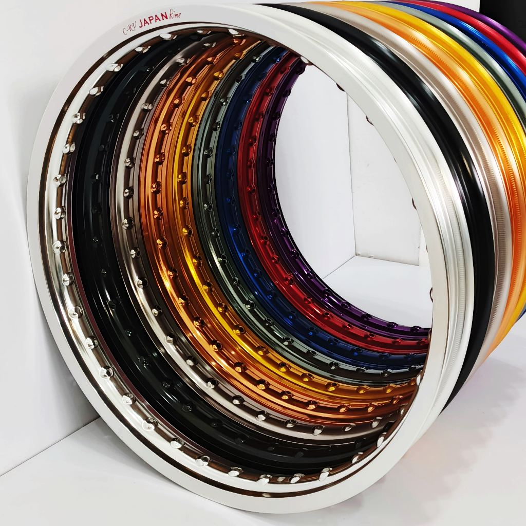 VELG LINGKAR ALUMINIUM CRV JAPAN RING 14 UKURAN : 140 , 160 , 185 , 215 , 250 WARNA : HITAM , SILVER , COKLAT BRONZE , 9OLD ,