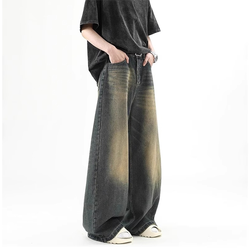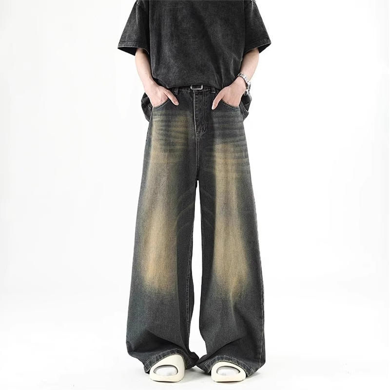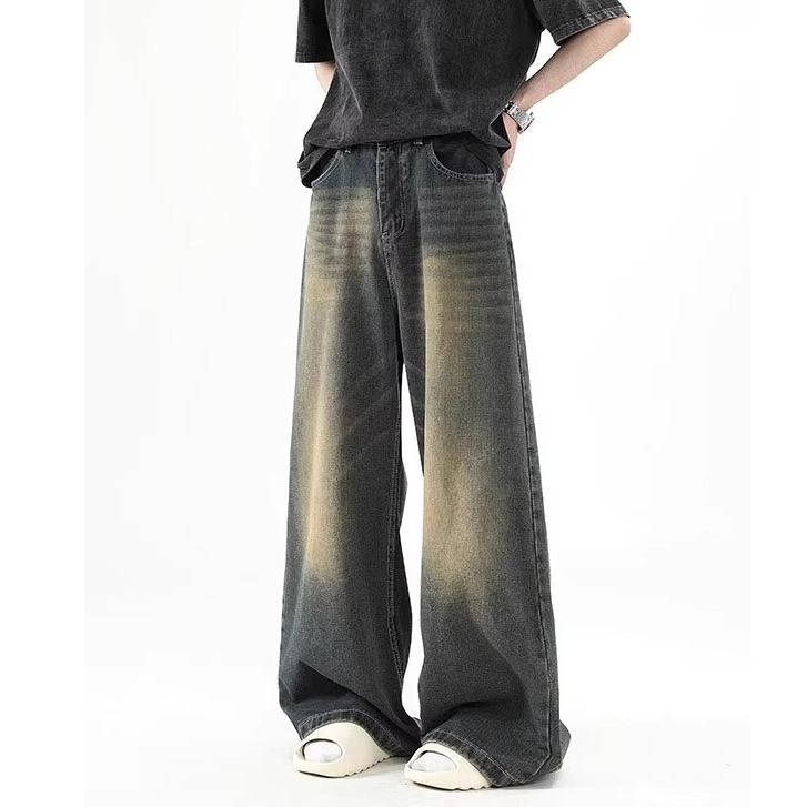 X-Gent Celana Gombrong Biru Retro Kulot Jeans Pria Jumbo Baggy Denim Pants Cowok Korean Style