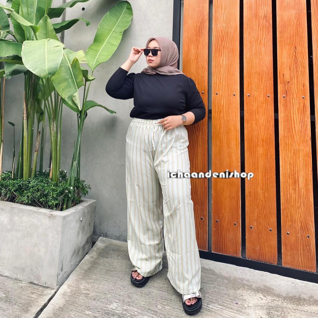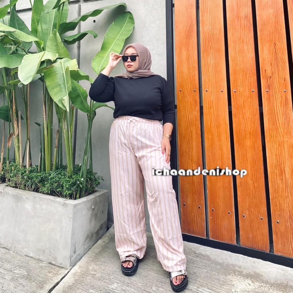 ICH - Kenny Pants - Everyday Pants - Stripe Pants - Celana Salur Kulot Jumbo Wanita Motif Salur Panjang Big Size