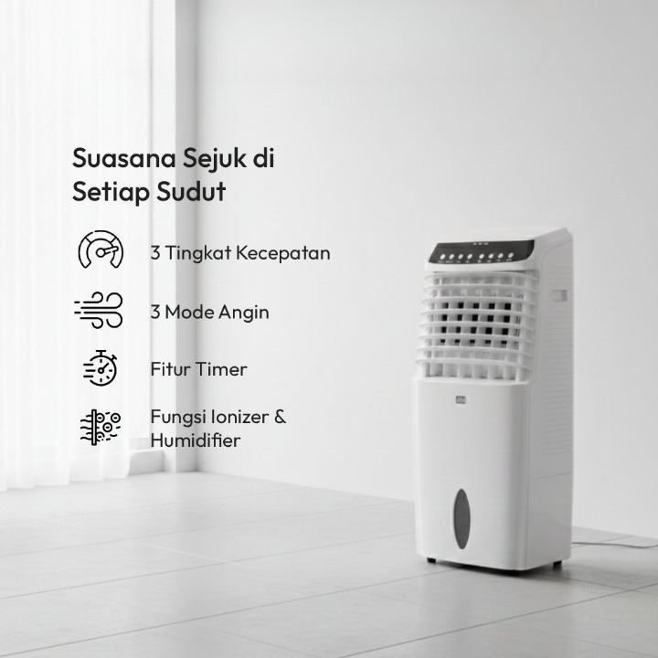 AZKO Apa 10 ltr Air Cooler 1200cmh - Putih Ice Conditioner Pendingin Ruangan Penyejuk Udara Kipas Angin Evaporasi Coolin