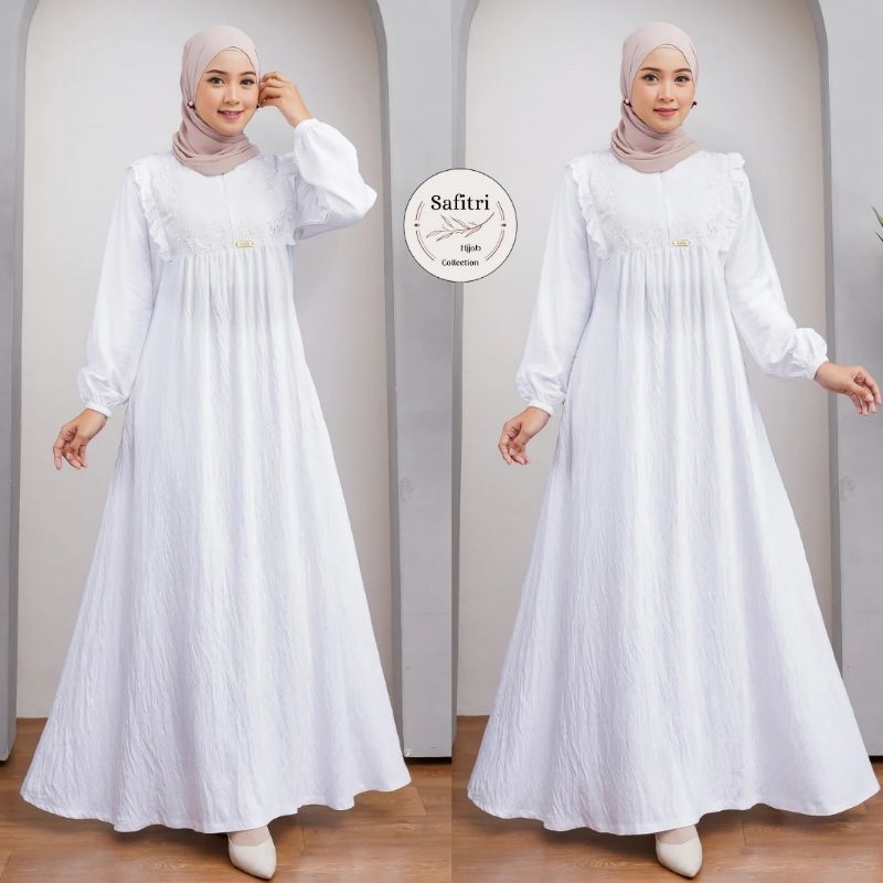 Zora Dress 1 Gamis Bahan Polo Linen Putih Hitam Manasik Haji Thawaf Umroh By Safitri Fashion