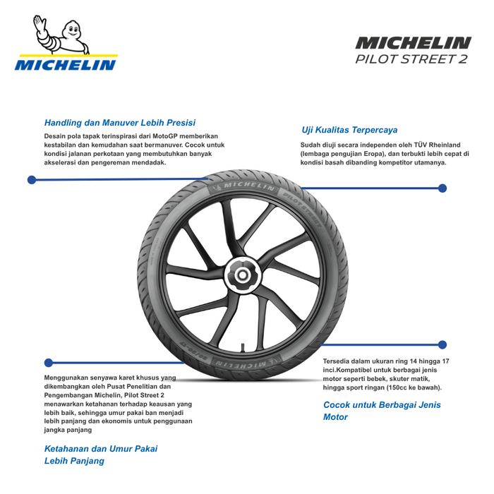 Ban Motor Michelin Pilot Street 2 100-80 R14 - Ban Motor Tubeless
