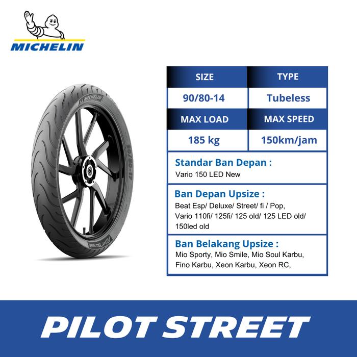 Ban Depan Motor Vario 150 Michelin Pilot Street 90-80 R14 - Tubeless