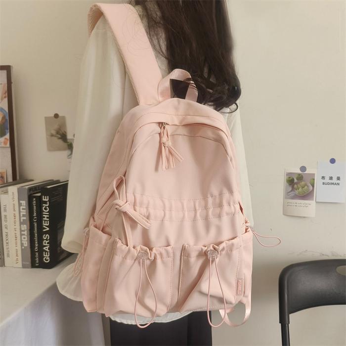 CHIYUM Tas Ransel Wanita Tas Sekolah Cewek Santai Baru Kapasitas Besar Nilon Tas Laptop Siswa Dasi