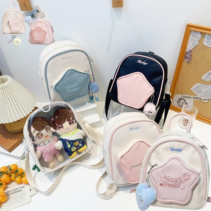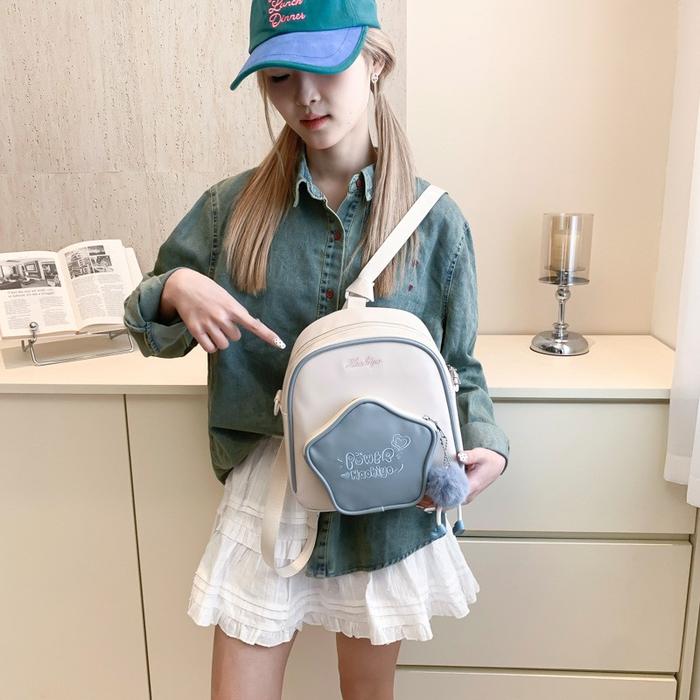 Toybebe Tas Ransel Bahan Pu Bintang Pink Viral/Y2k Tas Wanita Import Ransel/Tas Sekolah Ransel