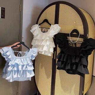 KSP12-Kaos Tshirt Atasan Katun Anak Perempuan Korea Ruffle 3 Layer - Biru L
