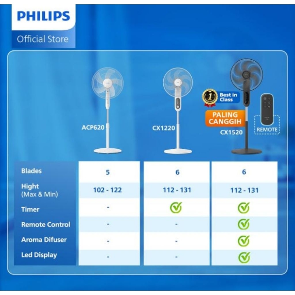 Philips Kipas Angin LED Display CX1520/01 - Kipas Angin 6 Baling dengan Remote, Timer & Aroma Diffuser
