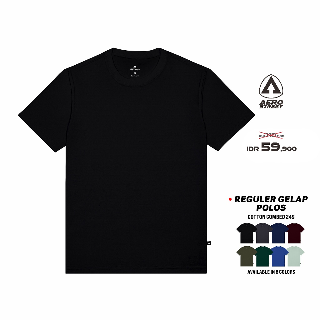 Aerostreet T Shirt Reguler Polos Gelap Kaos T-Shirt Tshirt KAAAA