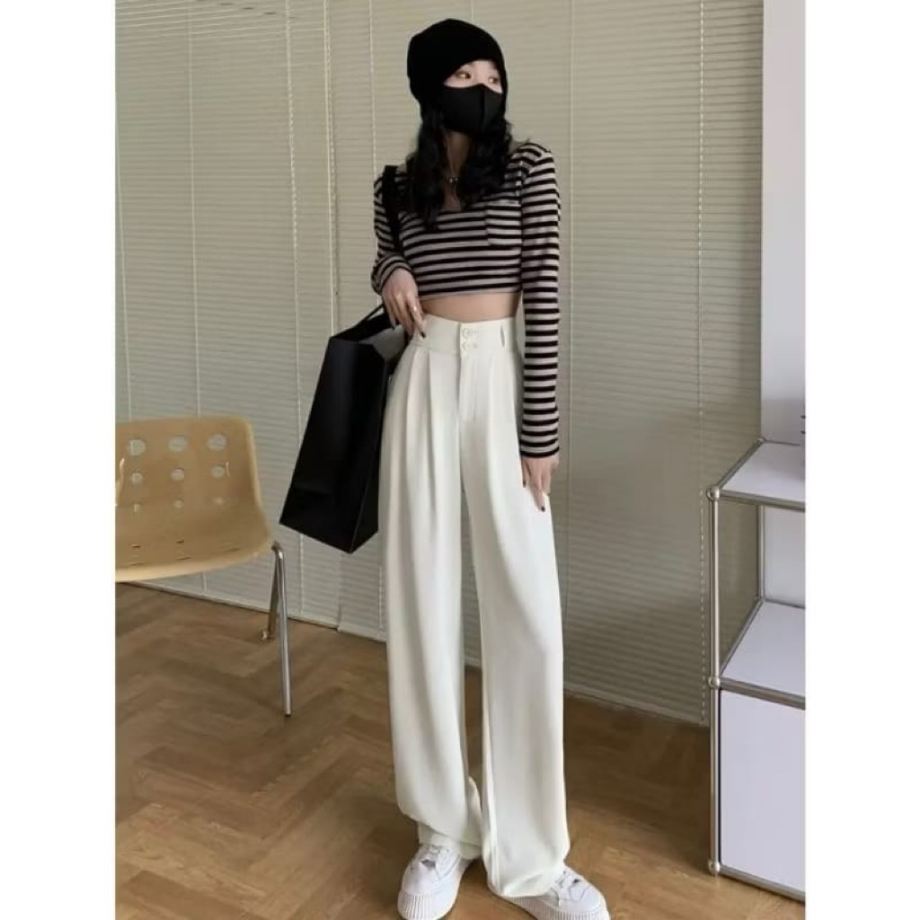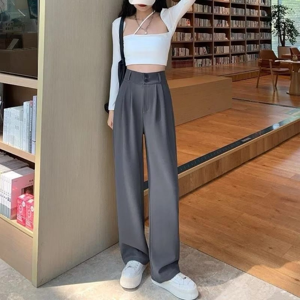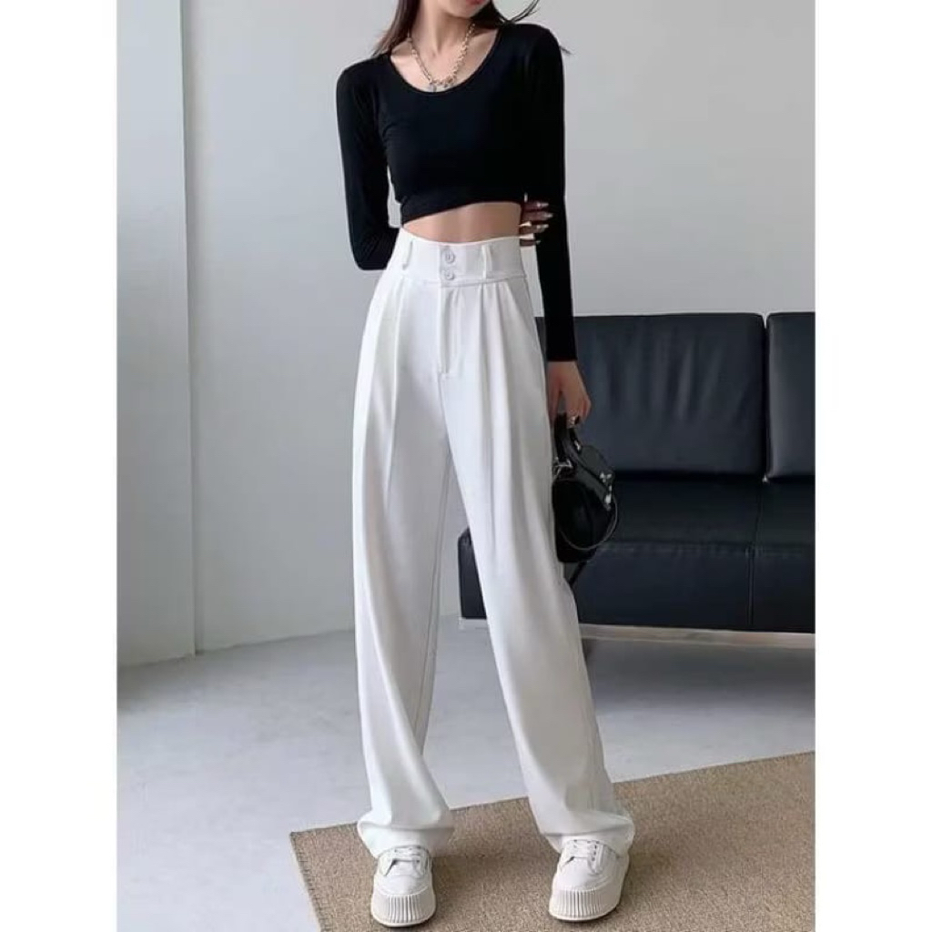 Celana Loose Pants PREMIUM - Celana Kulot Anti Kusut - Celana Higwhaist Korean Style Double Kancing