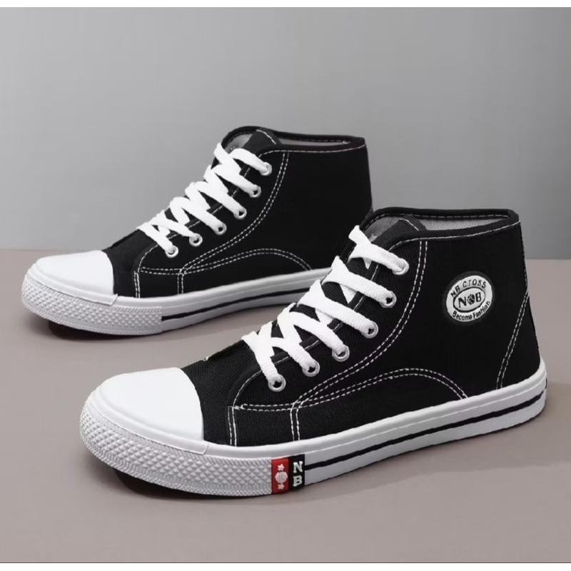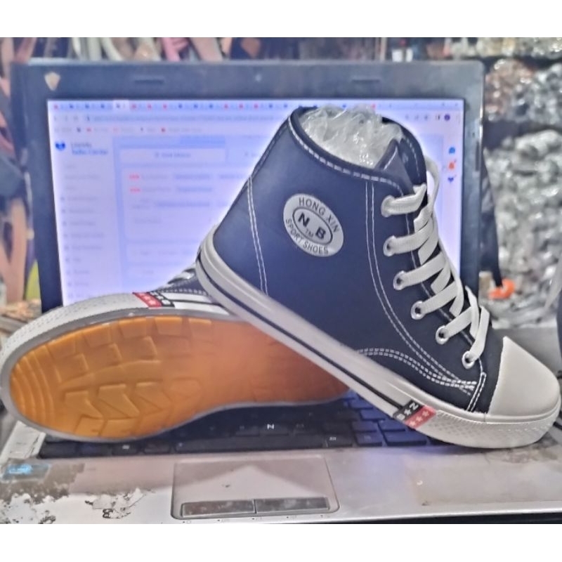 Sepatu nb hitam putih.sol kuning boot tali buat anak SD SMP SMA