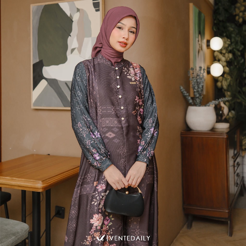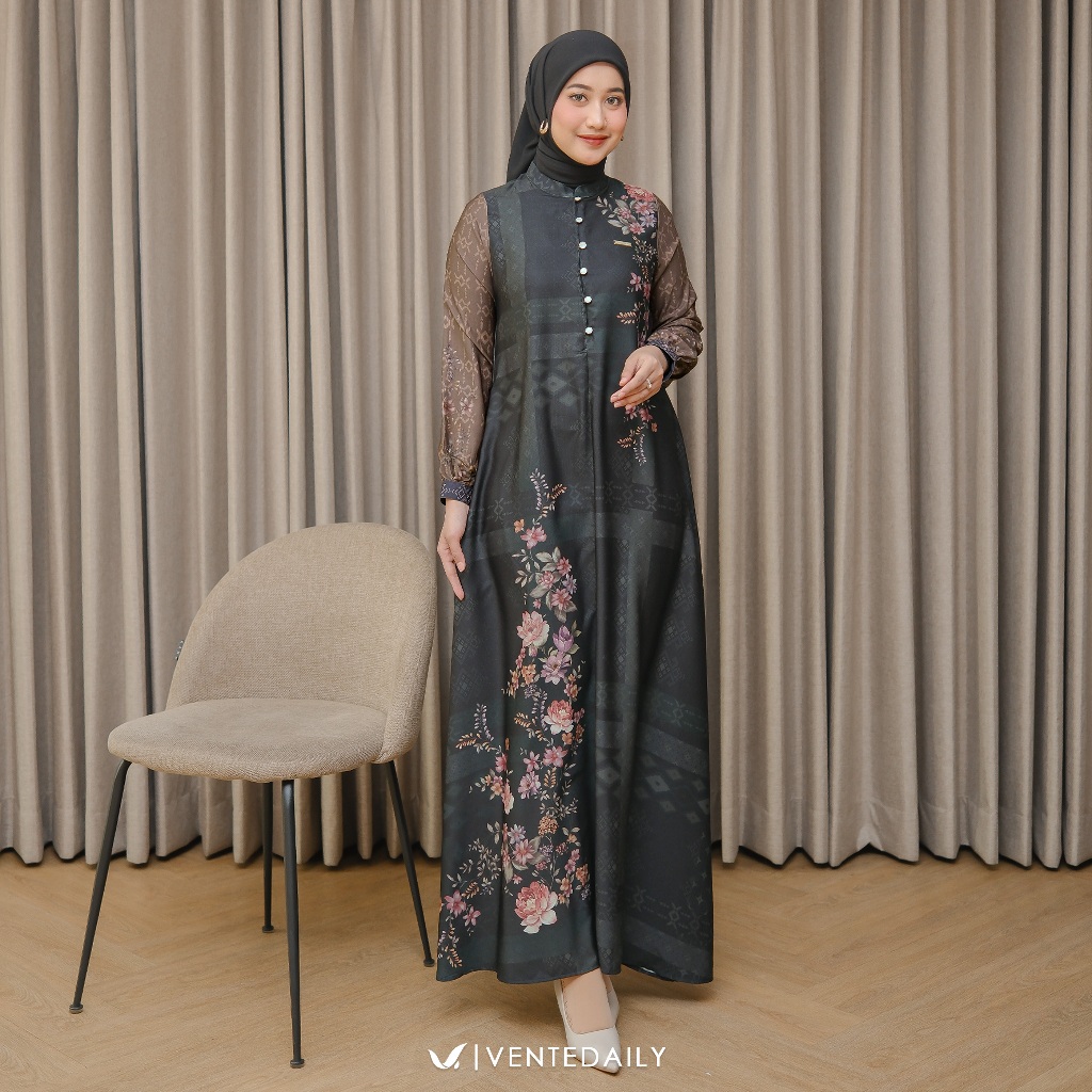Ventedaily - Fiana Gamis Kondangan Wanita Kekinian Motif Bunga Simple Elegan Terbaru