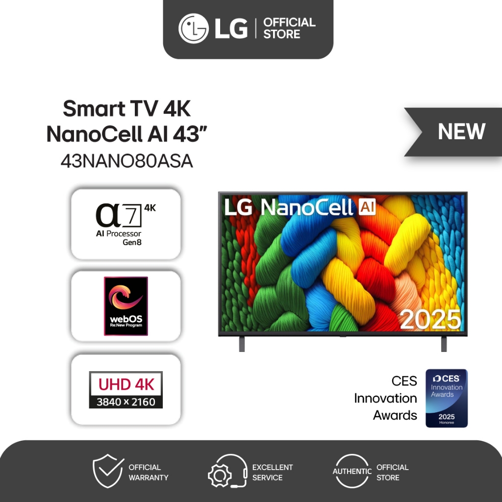LG Smart TV 4K 43 Inci NanoCell AI NANO80 2025 | HDR10Pro | Real 4K | webOS | Ash Grey - 43NANO80ASA
