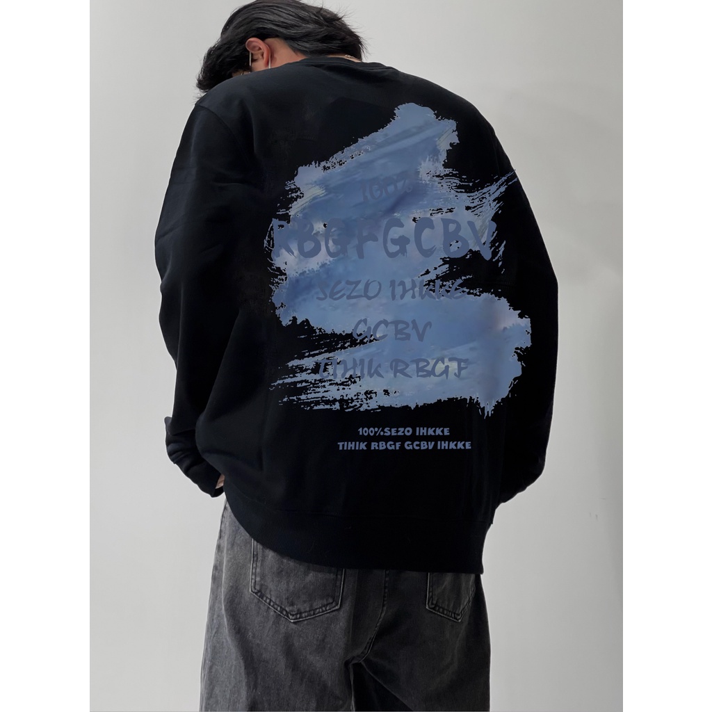 The Monseur Gallery Sweater Oversize Blue Alphabet | Sweater Hitam A0381