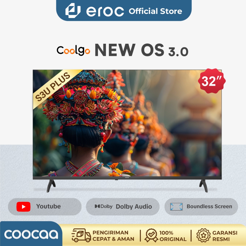 TV COOCAA Smart TV 32 inch - Coolita 3.0 - 2K LED - Youtube/ Prime Video - Dolby Audio - 32S3U Plus