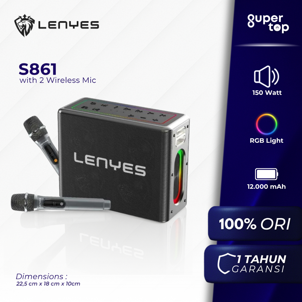 LENYES S861 Speaker KTV Karaoke Bluetooth 150W 5.0 TWS RGB LED Bass HiFi + 2 Wireless Microphone