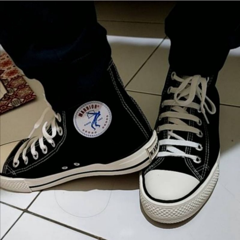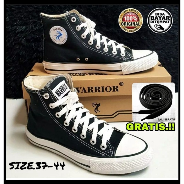 WARIOR Sepatu Sekolah Kuliah kerja Cowok Cewek Hitam Putih Tali Tinggi Warrior Sparta Hc Original Size 33 sd 44