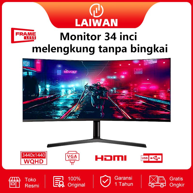 【LAIWAN】Monitor PC Gaming Curved 34 Inci - 4K UHD | 165Hz Anti Tearing dan Premium quality