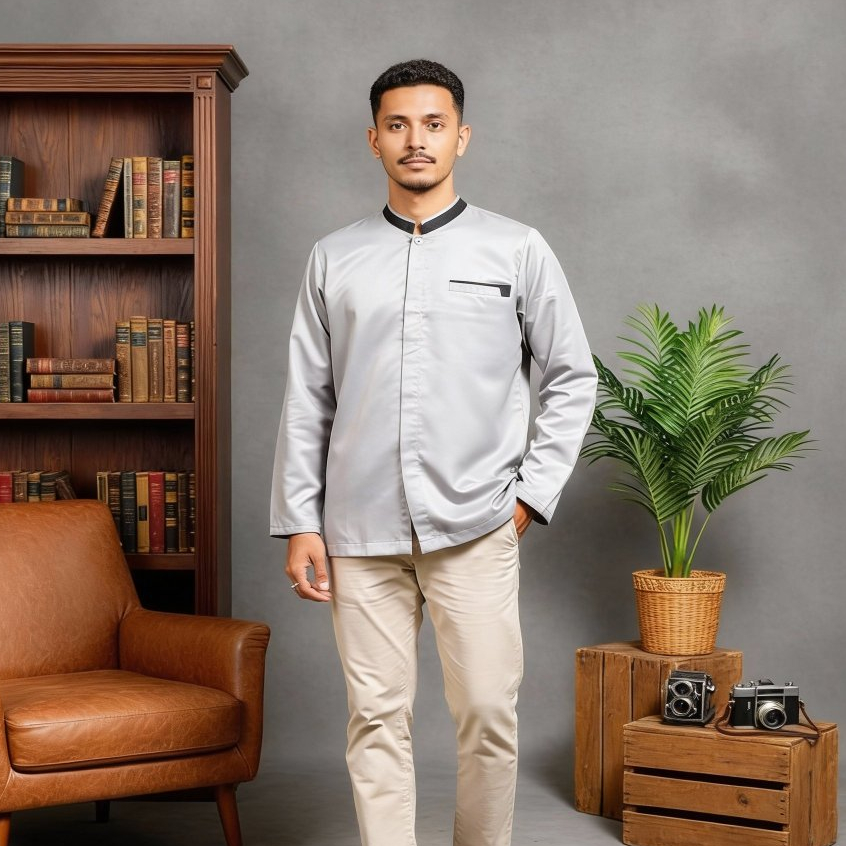Kemko Pria Premium Lengan Panjang Elegan Fashion Muslim Kemeja Koko Modern Bahan Adem Jahitan Rapi