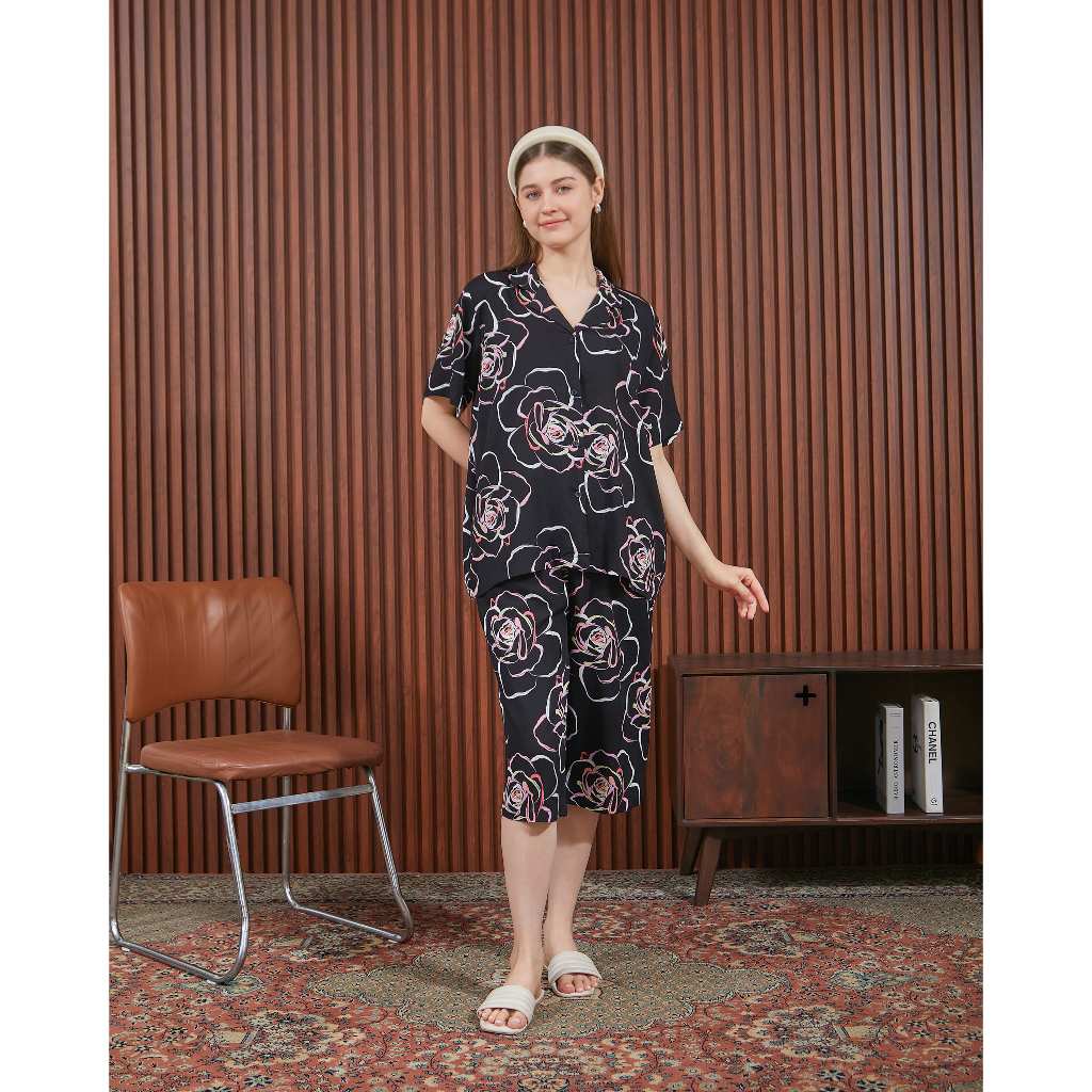 DYD LABEL Alleya Piyama Premium Setelan Celana 7/8 Bahan Rayon Premium Busui Friendly Full Front Button All Size Sleepwe
