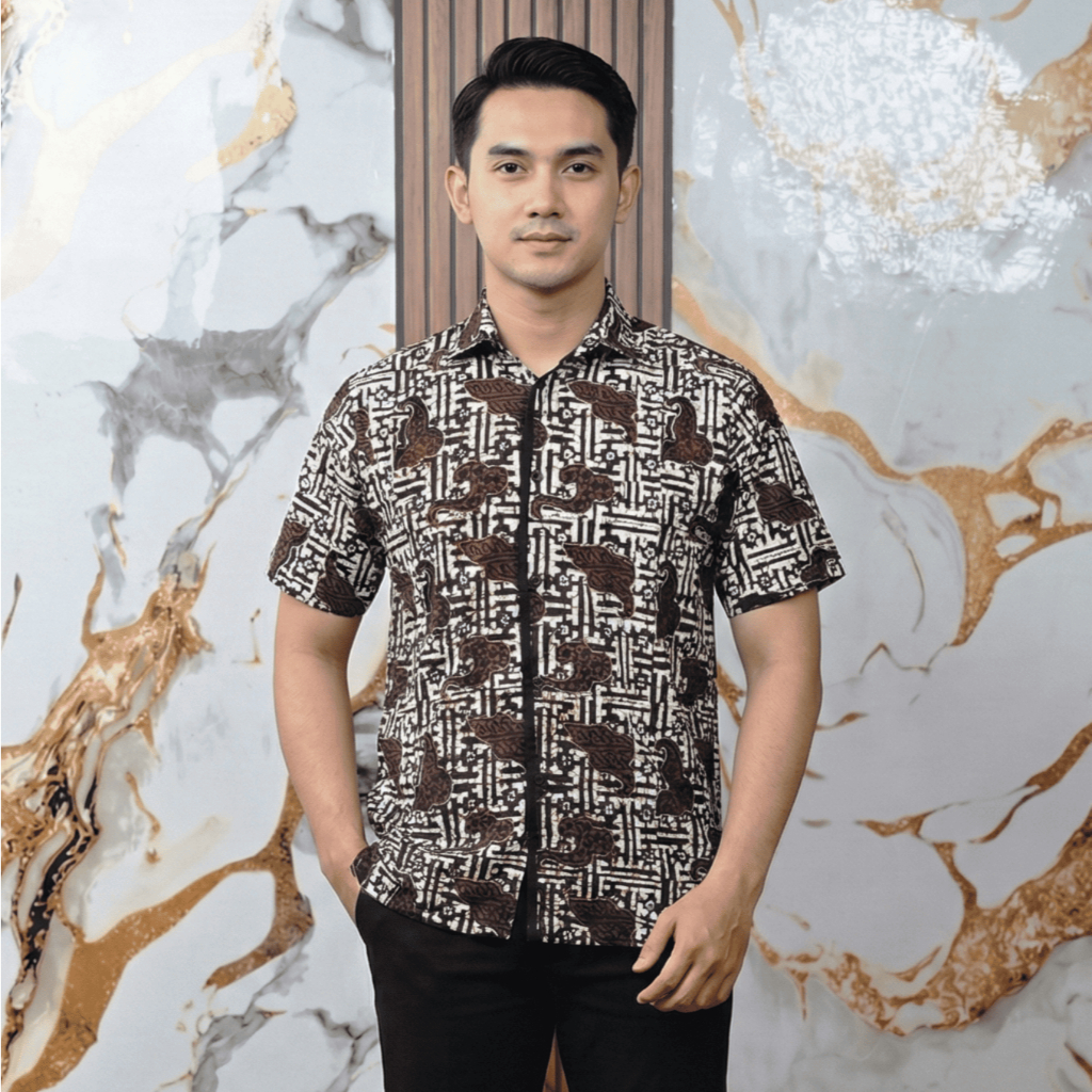 Kemeja Batik Benji Sogan Baju Batik Pria Motif Modern Lengan Pendek Slim Fit Premium