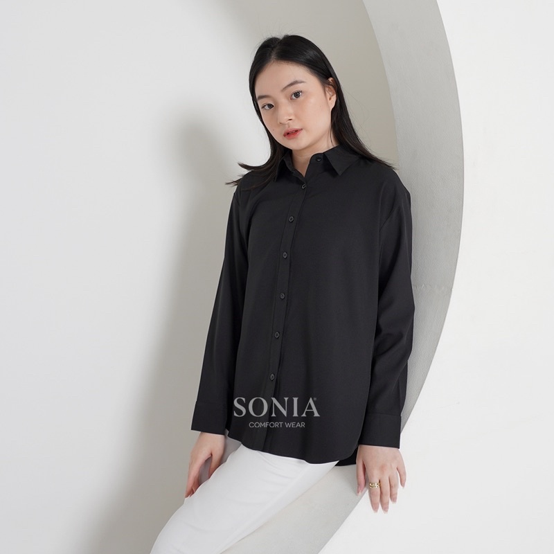 Yuri Top B2304 Sonia / Kemeja Katun Polos Premium Lengan Panjang Wanita / Kemeja Kantor Formal Basic