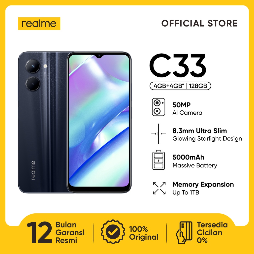 OFFICIAL STORE realme C33 4GB+4GB* | 128GB (50MP AI Camera | 8.3mm Ultra Slim hp realme terbaru