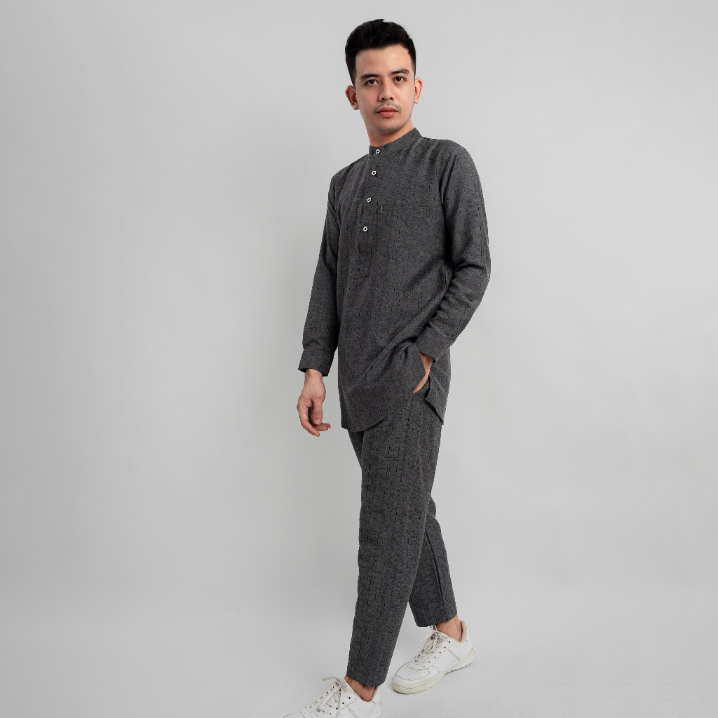 KATSAE - HAZMY Baju Koko Pria Dewasa Kemeja Koko Pria One SET Lengan Panjang Katun Zakat Premium