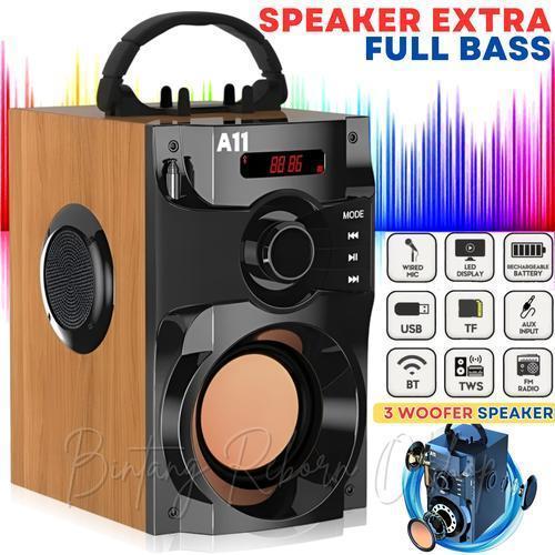 BISA Fleco Speaker Bluetooth A11 Full Bass 3 Woofer Super Bass BT USB TF CARD AUX FM Support Karaoke Multimedia dengan 3 Woofer Bass Super dan Dukungan BT USB TF CARD AUX FM - F-A11 Speaker Saja