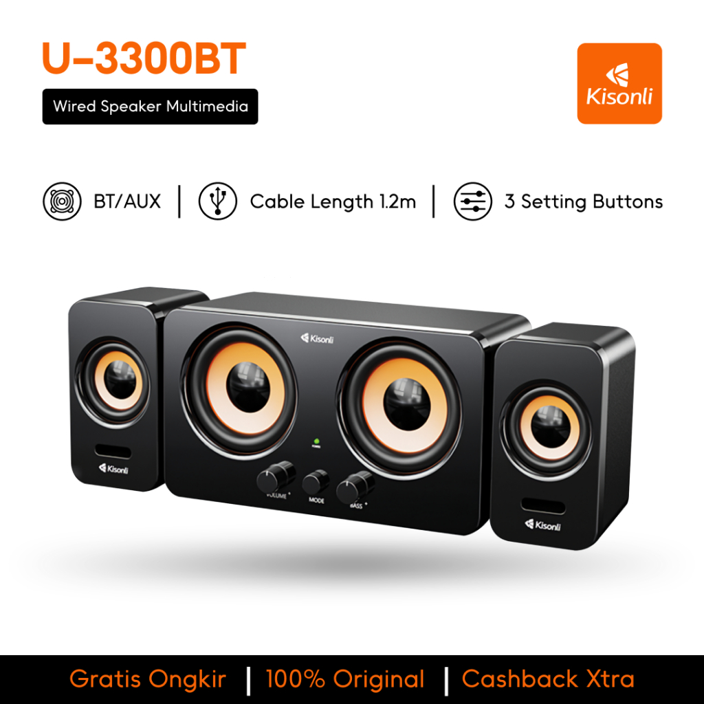 KISONLI Speaker Bluetooth Komputer Multimedia U3300BT Stereo Subwoofer AUX, USB